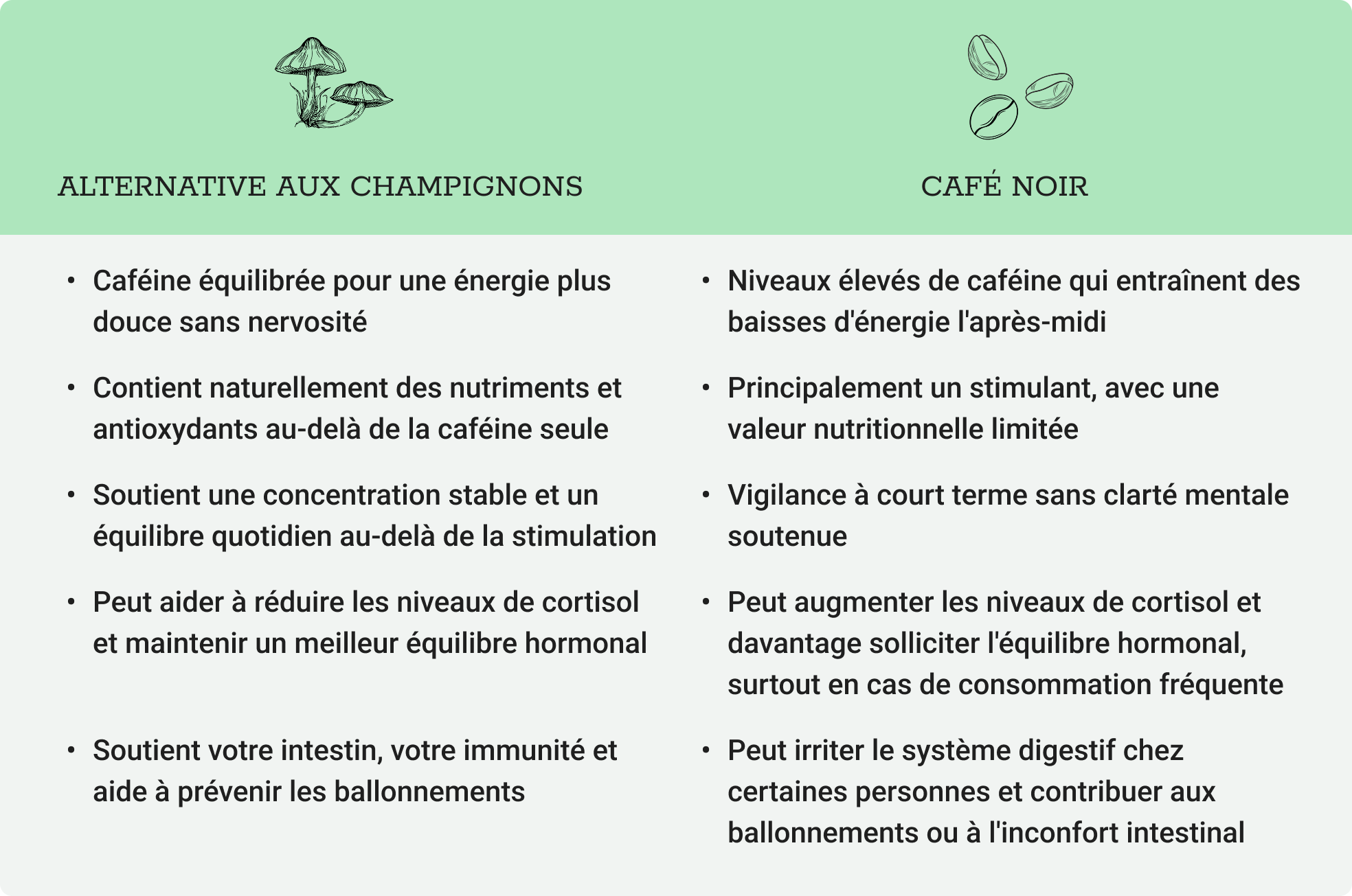Voici comment Coffee 2.0 se compare aux autres alternatives au café à base de champignons dans une comparaison directe.