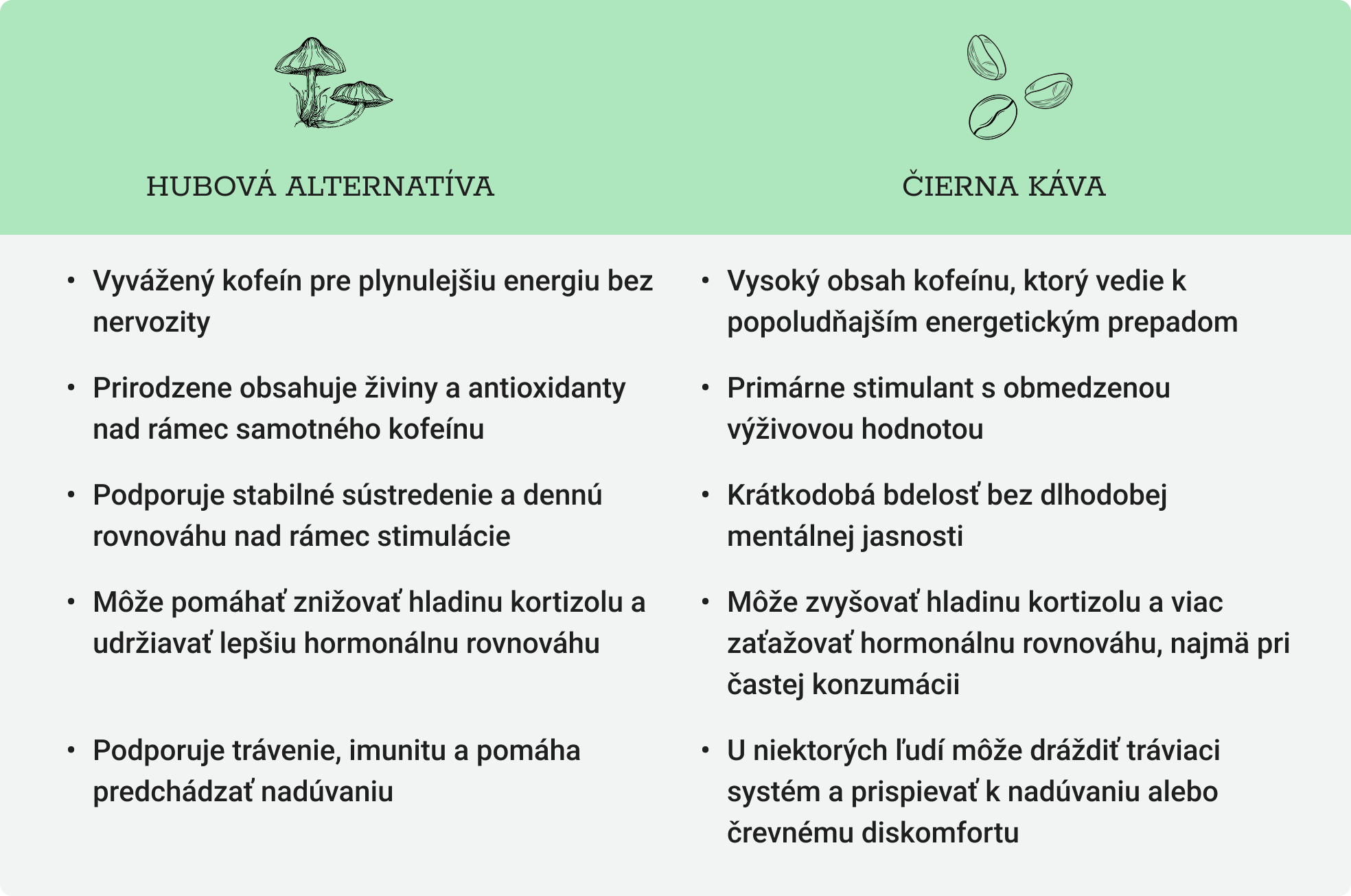 Tu je priame porovnanie, ako si Coffee 2.0 vedie oproti iným alternatívam hubovej kávy.